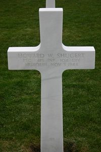 Howard Shugert was part of a combat patrol of G Company, charged with setting up a road block. He volunteered to make a dangerous reconnaissance, during which he killed one German, captured another and returned with vital information as to the deployment of enemy troops. He volunteered for a second patrol which was ambushed and suffered fatal wounds.He was awarded the Silver Star Medal posthumously for this action.