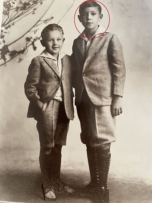 On one photo, he poses as a young boy with his brother Glenn.