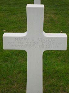 Pvt Harry A. Vinton inducted into the Armed Forces on 6 April 1943. He was wounded in the Battle of the Bulge on 7 January 1945.