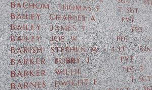 Pfc Joe W. Bailey was a chauffeur. He enlisted at Fort Sam Houston, Texas on 17 March 1944.His squad was defending a roadblock when the enemy laid down a barrage on its position. The squad was ordered to withdraw. He was not present when the squad was reorganized.