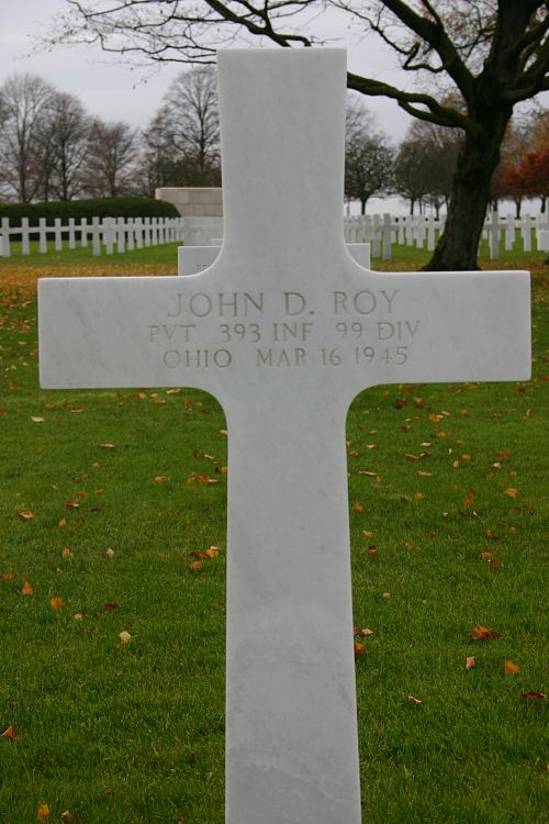 Pvt John D. Roy graduated from DePauw University in 1932 and was a manager at the Gustav May Insurance Company in Cincinnati.He was killed by shrapnel fragment wounds in his back.