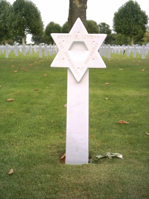 2nd Lt Henry T. Levitan graduated from Steelton High School in 1937, and Temple University in 1941 attended college for 4 years. He enlisted in New Cumberland, Pennsylvania on 20 October 1941.The airplane was shot down by Hauptman Alfred Grislawski flying a FW-190 (J.G. 1) at 1146 hours at 27000 feet shortly after dropping their bombs on the target. With one engine on fire, the crippled B-17G began to lose altitude. The German fighters continued their attack and shot out the second engine on the left wing.