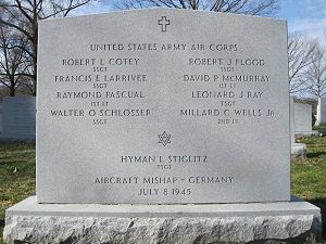 Leonard Ray was buried in Maryland on 5 October 2007. Robert Flood was buried in Pennsylvania on the following day. Hyman Stiglitz was buried on 28 December 2007 in Tucson, Arizona. The other four identified through DNA were buried at Arlington on 12 June 2008 along with a mass burial for the entire crew which contains all of the remains that could not be identified.