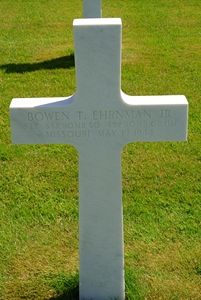 There seems to be some questions about Lt. Ehrnman's fate. We found him listed in the NARA POW file. It included a notation that said he died as a POW. No camp or other details were given. Since Lt. Rogers was flying in the co-pilot's seat, no one can say exactly where Ehrnman was at the time of attack. This fits Heckmann's account that no one was flying the plane. Therefore we suspect he did survive the initial attack but was severly wounded, jumped out and then died in a German Hospital after he was found. German reports also state that the plane's serialnumber was clearly visible after it crashed in Hannover.Source of information: Michel Beckers, 492ndBombGroup, www.ancestry.com - Family Tree