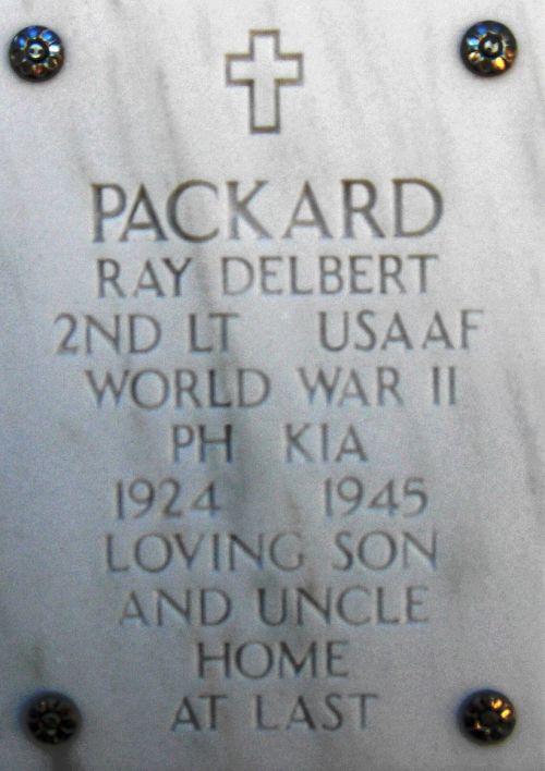 On 25 August 1944, Lt Packard was a pilot in a flight of 22 P-38 Lightning fighter aircraft that left the allied airfield at St. Lambert, France, to attack an enemy airfield near Laon-Chambry, France. En route to their target, the fighter group was intercepted by more than 80 German fighters near Beauvais, France. During the ensuing dogfight, 11 P-38s were shot down, including Packard's which crashed 15 miles south of Beauvais near the town of Angy. Five of the pilots escaped and evaded enemy capture, and two were taken prisoner of war. Of the four men who were missing in action, three were later recovered and identified, but Packard remained unaccounted for.
