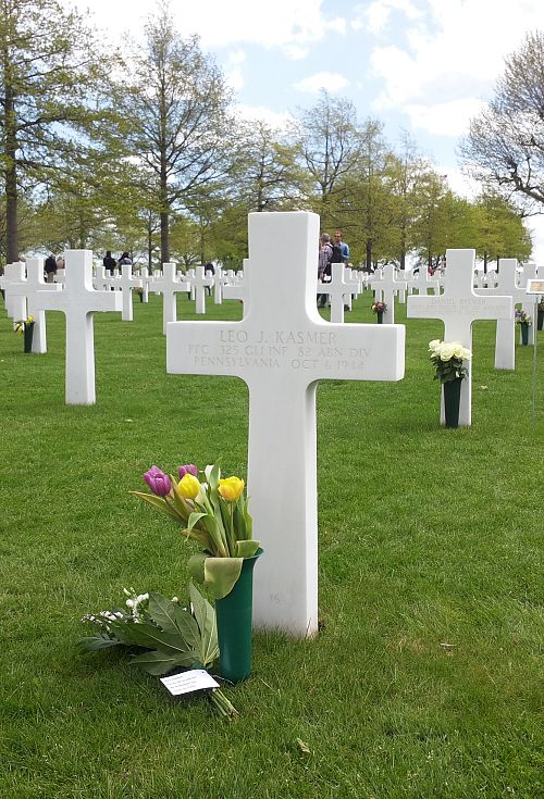 Pfc Kasmer was first buried at the Temporary American Military Cemetery of Molenhoek, the Netherlands.