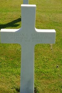 Herman Ballard completed 18 missions before he was shot down by an enemy ME262. First attack 6 to 7 O'Clock level broke off to left level above. This attack repeated by waves of one to four A/C. A/C 43-38575 dived and exploded in the air. No chutes were seen."1st. Lt. Herman L. Ballard, 20, pilot of a Flying Fortress in England, is missing in action over Germany since March 21, according to a telegram from the War Department received by his mother, Mrs. Deborah A. Ballard, 404 West Sugartree street. Lt. Ballard, who formerly lived at Port William and attended school there until he was about 15 years of age, entered the service from Columbus about two years ago and went overseas early in December 1944. Last letter Mrs Ballard received from her son was written March 13, eight days before he was reported missing. The B-17 pilot is a graduate of North high school in Columbus."