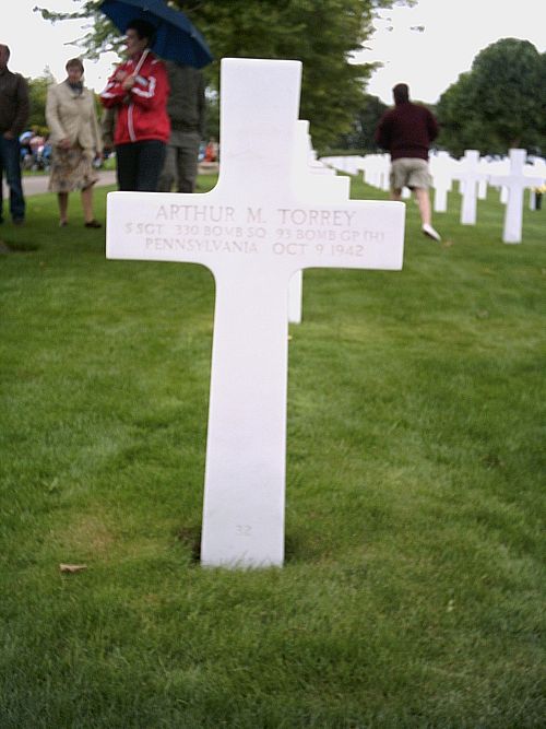 S/Sgt Arthur M. Torrey was a mechanic before he joined the Air Corps of the Regular Army in New Cumberland, Pennsylvania on 26 September 1941.The aircraft was attacked on the way to the target by a German fighter near Dunkirk and took direct hits in #4 engine and the bomb bay.