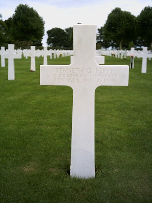 F/O Perry was found dead at the place of the crash. He was initially buried at the municipal cemetery of Kistritz.