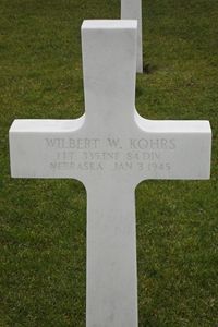 Wilbert Kohrs attended Peru State Teachers College and also worked as a teacher in the local school system.He trained at Camp Walters, Texas and at Camp Robinson, Arkansas, before receiving his commission as second lieutenant at Fort Benning. He eventually deployed to Europe in September 1944 after receiving additional training at various camps located throughout the country.