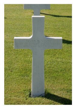 The ball turret gunner S/Sgt James S. Vogt died when struck by the tail section of the aircraft as he attempted to bail out. His parachute apparently never opened. He was later identified by other crewmembers for the Germans who captured them, where he fell, lying near a farmhouse.