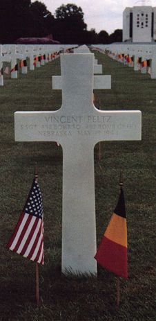S/Sgt Vincent Peltz graduated from Linwood High School in 1937.He was involved in a bombing raid to attack a marshalling yard at Brunswick, Germany. The 492nd Bomber Group was caught without fighter protection by the German Luftwaffe. After being severely hit by FW-190s, Pilot Pratt announced to his crew that they were going to bomb the target "come hell or high water!" But the spreading fire forced an order to abandon the airplane. Only 3 gunners made it out before the fire reached the bomb bay causing the aircraft to explode into a huge fireball.