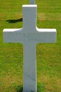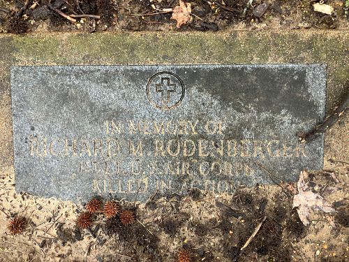 The airplane was hit by flak. The pilot testified that he saw Lt Rodenberger in the nose section. The pilot blacked out for a short time, due to an explosion. That was the last time he saw the Navigator. He supposes Lt Rodenberger was still in the airplane when it blew up. The rest of the crew, nine men, survived and were taken prisoner.He is remembered at Mount Hope Cemetery in Belleville, Illinois.