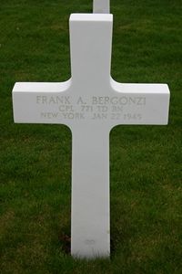 Cpl Frank A. Bergonzi enlisted in Buffalo, New York on 27 January 1941.In a house a stock of bangalores and dynamite is stored and prepared for use. In the afternoon of 22 January this stock explodes, destroying the house completely, wounding several men and killing Cpl Frank A. Bergonzi, Cpl John J. Cuneo, T/5 John G. Pinto, T/5 Antonio Muscente, Pfc Frank M. Reese and Pfc Rosario J. Maniscalco. All these men are buried at Margraten.