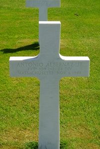 Pvt Antonio Albernaz Jr. was a sales clerk before he enlisted at Fort Devens, Massachusetts on 13 March 1944.According to a report Pvt Albernaz and two other members of his unit were advancing through a wooded area when they were hit by mortar fire.
