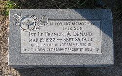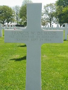 1st Lt Francis De Mand graduated from East High School and attended the University of Wichita. He was employed at the Spines Clothing Company.A direct hit of flak caused by a gas tank to explode.