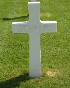 Pfc Norman D. Shultz graduated from Woodrow Wilson High School in 1941. He was employed by the Pratt & Read Company.He enlisted in Hartford, Connecticut on 29 January 1943. Pfc Shultz was in the ASTP program and attended the Catholic University in Washington, D.C before being placed back into the infantry.