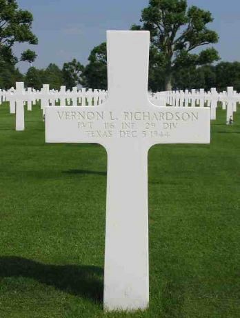 Pvt Vernon Richardson enlisted in April 1944.Source of information: www.wwiimemorial.com, www.fold3.com, Corsicana Daily Sun - 28 March 1945, www.ancestry.com - 1920/1930 Census