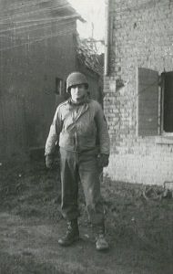 One photo showes him in his battle gear on 7 February 1945, just weeks before he was killed.