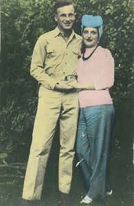 The third picture shows him in the middle with his stepfather William Sudo on his left and his mother Iva Bertha May (Lou) Horning Wood Sudo, and his niece Carole Wates.