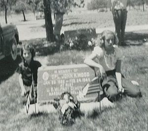 He is remebered at the Union Highlands Cemetery in Florence, Colorado. The ladies on either side are his sisters, Dorothy Jacqueline Wood Chiri (on the left) and Leona Jeannette Wood Wates (on the right).