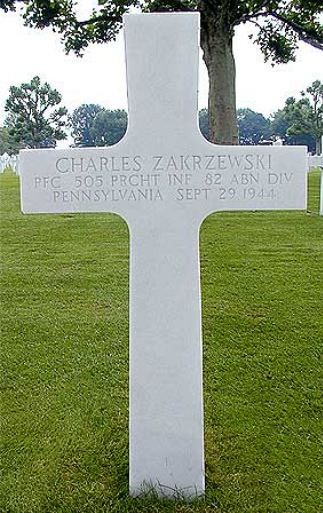 Pfc Charles Zakrzewski enlisted in Philadelphia, Pennsylvania on 7 October 1942.Source of information: Peter Schouteten, www.wwiimemorial.com, www.archives.gov, www.ancestry.com - 1920/1940 Census / U.S. World War II Army Enlistment Records, 1938-1946 / U.S. World War I Draft Registration Cards, 1917-1918, Michigan / Montgomery / Smith Ancestors Family Tree, www.ww2-airborne.us, www.marketgarden.com