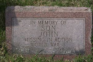 Richard A. Lohry, his nephew, provided the following additional information on 12 November 2014: 'Last November, I was contacted by Mr. Danny Keay in Germany. He is semi-retired from the army and is a military archaeologist. In going over X Files and also IDPF files he discovered that John’s remains may have been found in 1948. They are now buried in a numbered grave in Neuville, Belgium (Ardennes American Cemetery and Memorial). I am currently trying to obtain an exhumation order for DNA analysis.