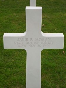 S/Sgt Jakie P. Moran enlisted on 12 November 1942 and was sent overseas on 1 May 1944.His wife's last letter from her husband was dated 15 November, in which he said he was in a rest camp in Holland.