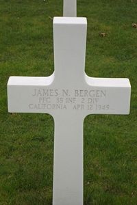 Pfc James N. Bergen enlisted in Los Angeles, California on 7 July 1944. He worked on a farm before he enlisted.Source of information: Peter Schouteten, Raf Dyckmans, www.wwiimemorial.com, www.archives.gov
