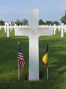 Source of information: Peter Schouteten, www.abmc.gov, www.wwiimemorial.com, www.archives.gov - WWII Enlistment Record, www.ancestry.com - Benson Family Tree / Headstone and Interment Record, IDPF