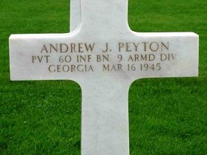 Pvt Andrew J. Peyton attended high school for 4 years. He enlisted at Fort McPherson, Atlanta, Georgia on 11 July 1944.Source of information: Raf Dyckmans, Astrid van Erp, Carla Mans, www.wwiimemorial.com, www.fold3.com, www.findagrave.com, www.ancestry.com - Family Tree / U.S. WWII Draft Cards Young Men
