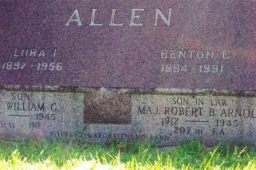 His brother-in-law, Maj. Robert B. Arnold was killed in Germany on 24 February 1945 and is also buried at Margraten.