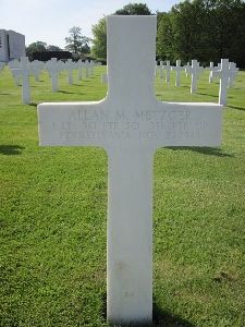 Allan M. Metzger graduated from Utica High School and attended Clarion State Teachers' College. He was employed as an inspector with the National Tube Company in McKeesport.He volunteered for the Air Corps of the Army of the United States on 28 January 1942 in Pittsburgh in Pennsylvania. As an aviation cadet, he completed his basic training at Cochran Field in Georgia. He was transferred to Napier Field, Florida for advanced training and received his wings and promotion to lieutenant there. He was promoted to the rank of first lieutenant at Grenier Field in Manchester, New Hampshire.