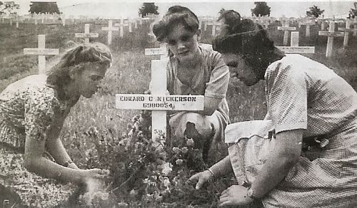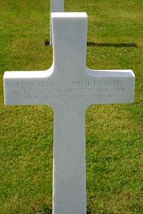 Sgt Edward C. Nickerson joined the Regular Army on 14 November 1939.Notes about the grave pictures: The first picture show his original wood grave marker. On the second pictures his grave is attended by local Belgian girls. The two last pictures were taken during a visit by his mother and father.