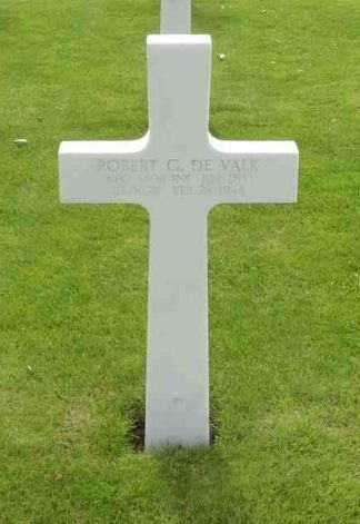Pfc Robert 'Bob' G. De Valk enlisted the service on 15 December, 1942 in Urbana, Illinois. He was killed in action near Boslar, Germany after the Rur River crossing. 102nd Ozark Division.Source of information: Astrid van Erp, WWII Memorial, Fold3, www.uiaa.org