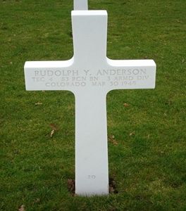 T/4 Rudolph Y. Anderson graduated from Excelsior High School.The picture shows T/4 Anderson receiving the Bronze Star Medal from Major-General Rose, division commander.