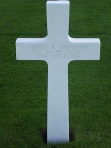 Pvt Harry A. Arpajian attended John Adams High School for one year and was employed at Kroehler Furniture Store.He enlisted in Cleveland, Ohio on 10 December 1943.