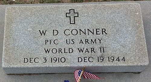 W.D. Conner enlisted on 16 March 1942.Pfc W.D. Conner is remembered at the Junction Cemetery in Junction, Kimble County, Texas.