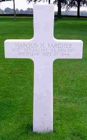 Sgt Harold H. Fargher was a graduate of Michigan State Normal College. He was employed by Bendix Aviation Corp.He enlisted at Fort Custer, Michigan on 15 January 1942 and was sent overseas in April 1943. He was in the invasion of Africa, Sicily, Italy and Normandy.