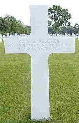 Pfc Guy E. Belcher enlisted at Fort McLellan, Alabama on 3 March 1943. He was sent overseas in May 1944He was first buried at the Temporary American Military Cemetery of Molenhoek, The Netherlands on 7 October 1944.