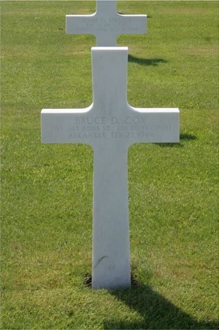 Bruce Cox graduated from Northside High School.The airplane was shot down by a German fighter. The entire crew of ten men was killed.