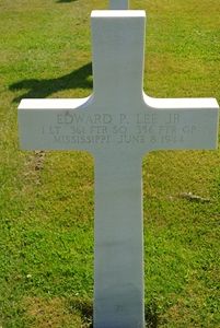 Edward P. Lee, Jr attended Clemson University.Statement of 1st Lt Homer M. Engelhorn, who flew in the same mission: "I was flying Red #3 on the fifth mission on 8 June 1944. We were strafing an armored convoy about 6 miles east of Montdidier, France at approximately 1900 hours. After the second pass, I pulled up to the right and over to my left I saw Lt Lee's airplane in a climb on fire with a lot of flame coming out. It fell into a stall and did about a full spin and hit the ground about a quarter of a mile south of the convoy we were strafing, and exploded. We pulled up and set course for home."