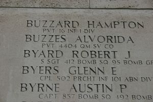 The airplane ditched off the coast of Langeoog. The entire crew of ten men was killed. Their remains were never recovered. Eight of them are remembered on the Walls of the Missing at Margraten. Two, Frank Abbadessa and Leonard Eaton, are remembered on the Walls of the Missing at Cambridge Cemetery.
