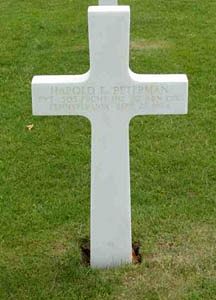 Pvt Harold E. Peterman was employed by the Pennsylvania Railroad before he enlisted in Harrisburg, Pennsylvania on 1 May 1943. He was sent overseas in December 1943.He was first buried at the Temporary American Military Cemetery of Molenhoek, the Netherlands on 28 September 1944.