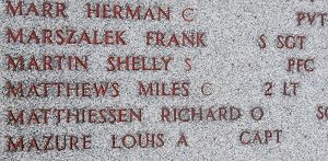 Miles C. Matthews graduated from East Nashville High School. He was employed by the Wolfe Michael Construction Company.He joined the Air Corps of the U.S. Army Reserve in Nashville, Tennessee on 25 September 1942.