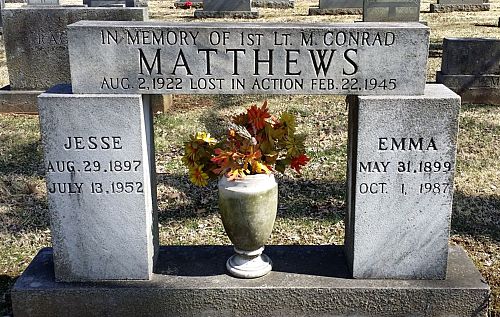 Lt Matthews is remembered at Spring Hill Cemetery in Nashville, Davidson County, Tennessee with a memorial marker.