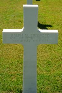 The remains of Sgt Bickford were found in Vossenack and initially registered as Unknown X-5465. He was evacuated to Ardennes Cemetery and could be identified at the research facilities there.Source of information: Raf Dyckmans, Peter Schouteten, Terry Hirsch, www.wwiimemorial.com, www.archives.gov, www.ww2-airborne.us, www.517prct.org, IDPF of Raymond C. Blanton,WWII Draft Card, 1940 US Census