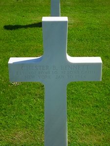 Chester Bennett had reported as an aviation cadet at the Army Air Forces Basic Flying School at Goodfellow Field near San Angelo, Texas in 1943 for further flight training. Before that the Union-Endicott High School graduate had served two years as an enlisted man in the Army Air Forces. 2nd Lt Bennett was graduated from Ellington Field where he received his pilots' wings.The aircraft collided with another plane in mid-air. The cockpit window made contact with the bottom of the nose of the higher ship. The lower ship burst into flames and the plane blew up.
