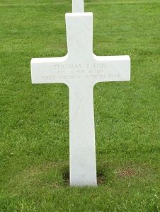 Pfc Thomas J. Hill attended four years of high school. He enlisted in Huntington, West Virginia on 28 June 1941.Source of information: Astrid van Erp, Carla Mans, www.wwiimemorial.com, www.ancestry.com - U.S. WWII Draft Cards Young Men / 1930/1940 Census / WWII Enlistment Record