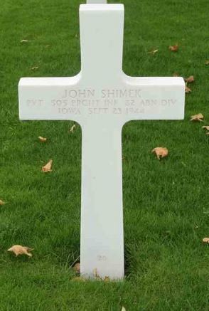 John Shimek attended Roosevelt High School and was employed by the city. He was a golfer and won two Ellis park golf tournaments and was runner-up in a city tournament.He enlisted on 25 June 1941 in Des Moines, Iowa. He was sent overseas in July 1944.